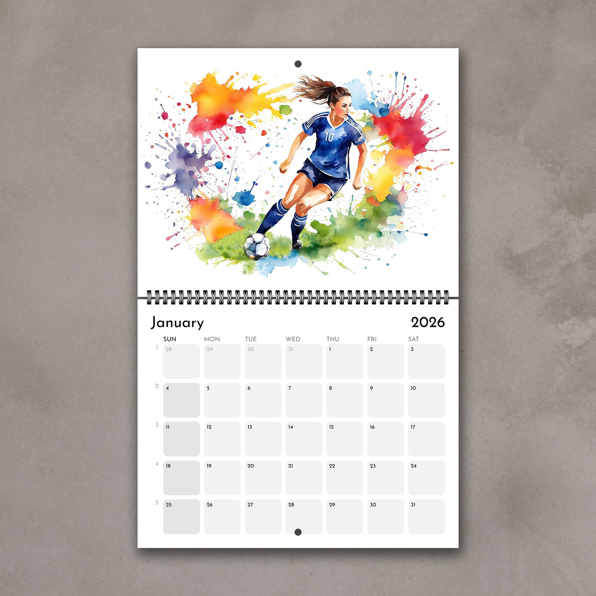 2026 Sports Wall Calendar – Girls Athlete Planner, Watercolor Decor & Sports Art Gifts