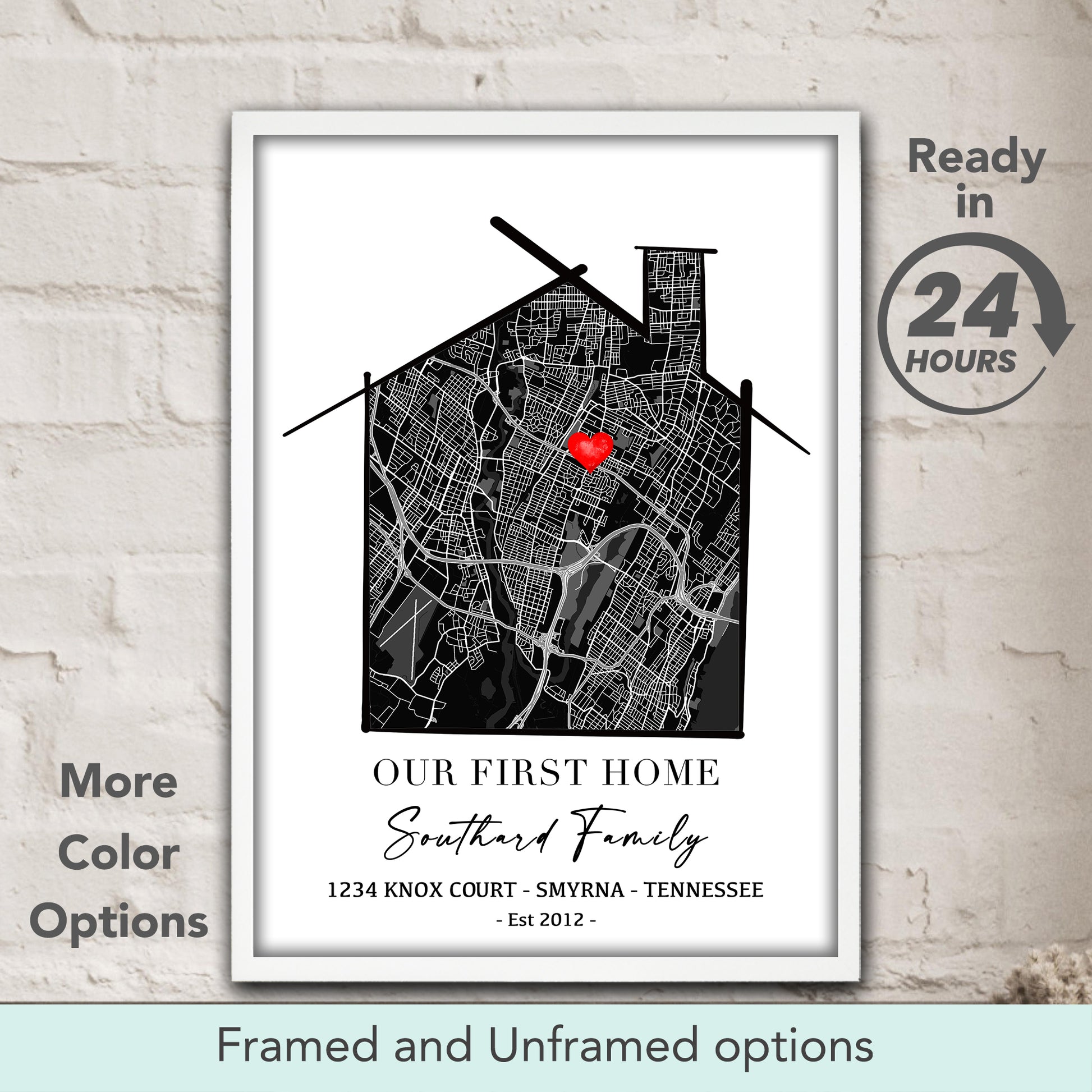 Turn your house into art with a personalized “Our First Home” map print that preserves memories for years to come.