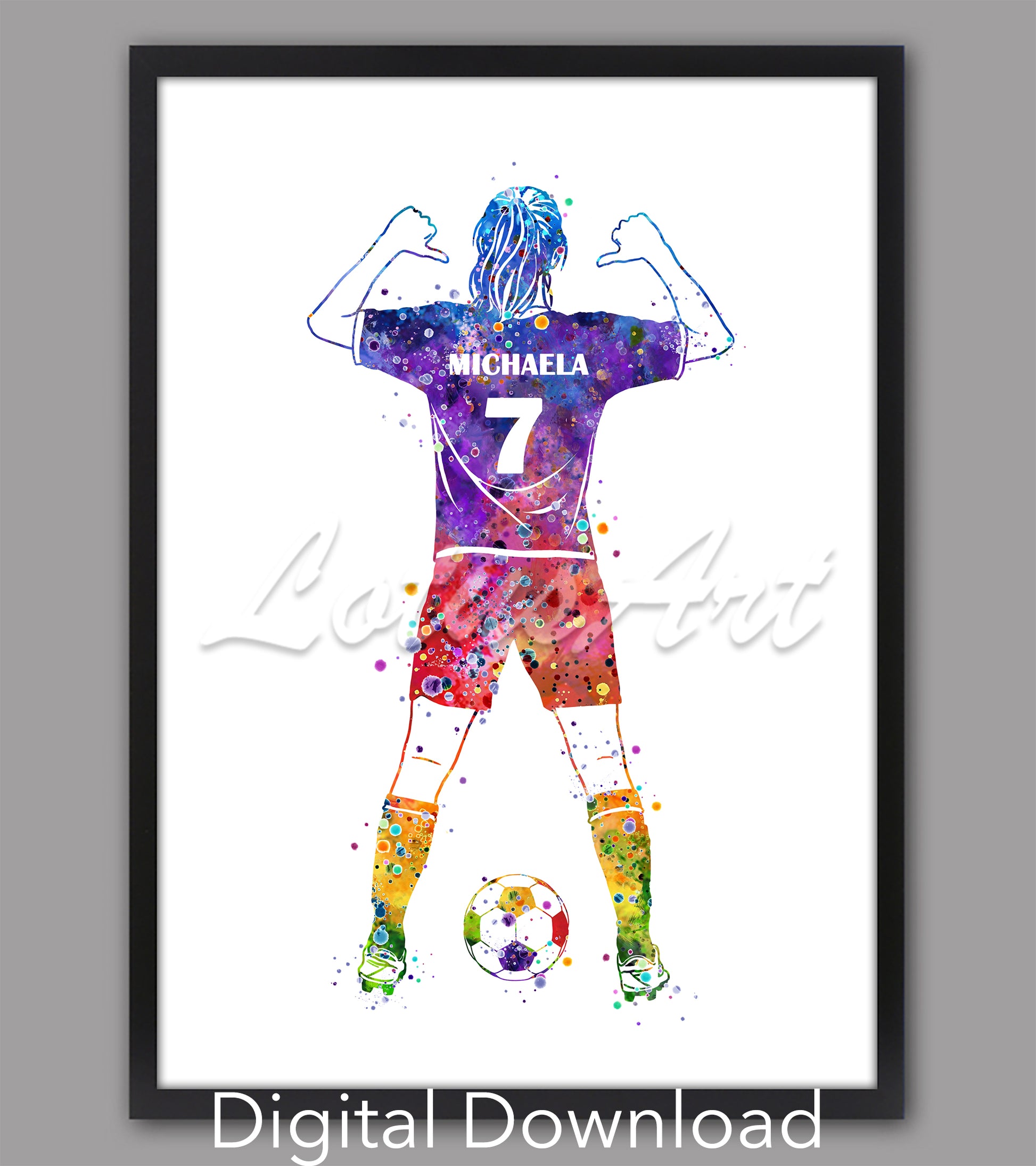 Bring the energy and spirit of the game into your home with this Girl Soccer Watercolor Digital Download. Created in a vibrant watercolor style, this made-to-order artwork captures the strength, passion, and movement of a girl soccer player.